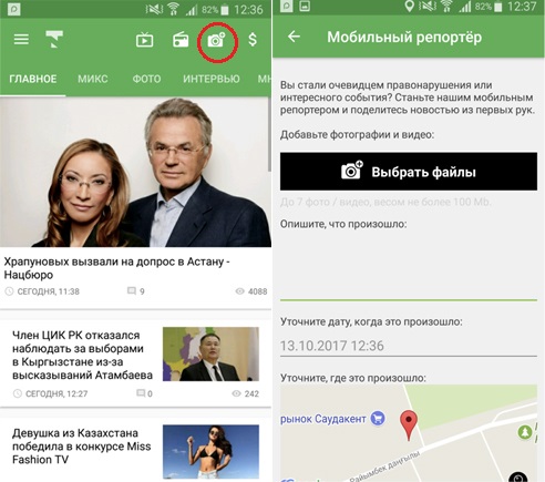 Tengrinews.kz обновил приложение: "Мобильный репортер", улучшение по фото и комментариям