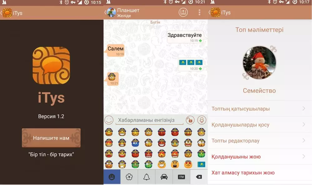 Приложение iTys имеет такой же функционал, как популярный сервис WhatsApp. На первый взгляд оно отличается лишь дизайном с национальным колоритом и мультиязычностью - в настройках программы можно выбрать казахский, русский и английский языки интерфейса. iTys использует стандартную клавиатуру телефона, поэтому для того, чтобы печатать на казахском языке, нужно установить соответствующее расширение.