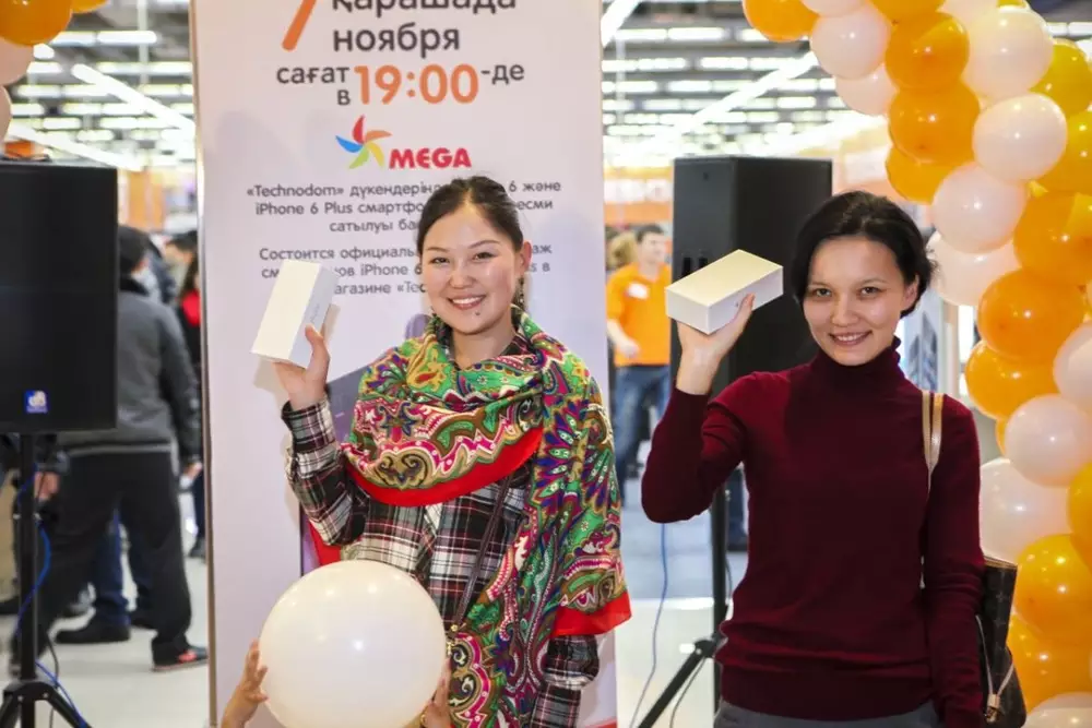 В магазин "Технодом", расположенный в ТРЦ "Mega Park", было сложно попасть. За полчаса до старта продаж более 100 человек собралось возле магазина и внутри него. "Смартфоны компании Apple пользуются устойчивым спросом на казахстанском рынке. Поэтому старт продаж iPhone 6 и iPhone 6 Plus является для наших клиентов отличной возможностью приобрести новинки у официального ритейлера", - отметил категорийный директор по цифровой технике компании "Технодом" Сергей Ким.