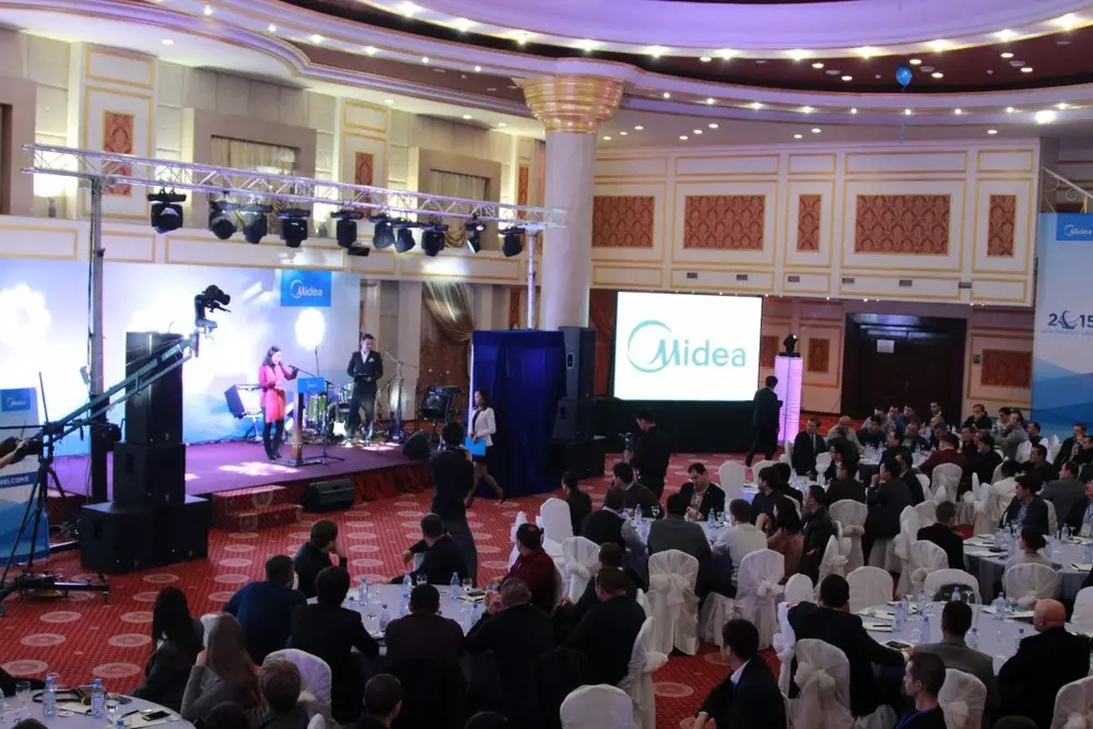 Презентация нового продукта прошла в Алматы. На торжественное событие были приглашены более 150 представителей крупнейших магазинов электронной техники из Центральной Азии и Кавказа. Представители Midea тепло приняли своих партнеров, а особо отличившихся за год работы наградили памятными подарками. Во время мероприятия были также представлены и другие новейшие модели бытовой техники Midea: холодильники, стиральные машины и обогреватели.