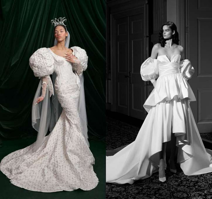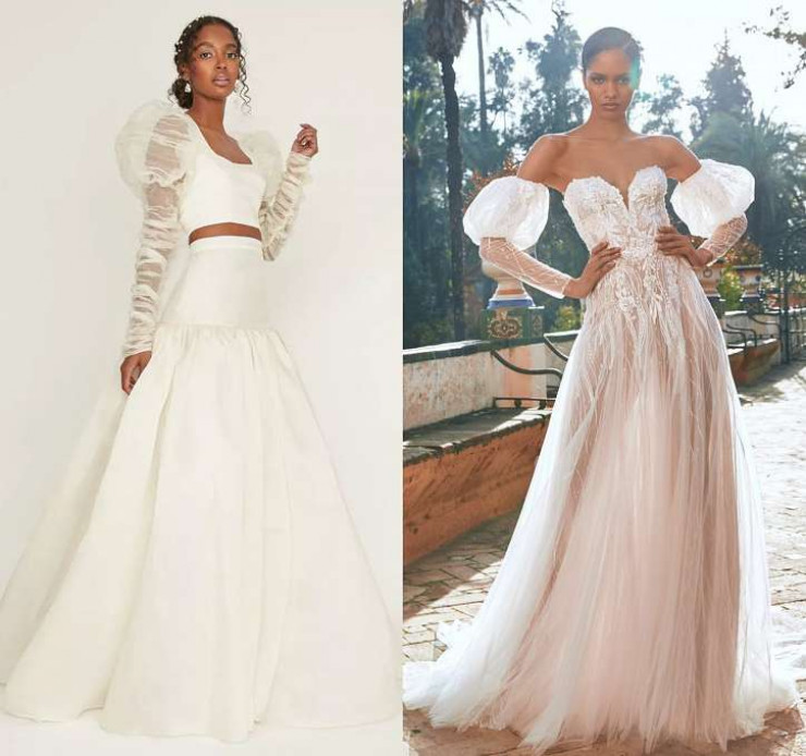 Дизайн эпохи Регентства нынче в фаворе у модных дизайнеров, так что удивляться появлению в свадебных коллекциях моделей с пышными рукавами не приходится. Хотите выглядеть как героиня исторического сериала? Изучите предложения брендов Odylyne the Ceremony, Wiederhoeft и Savannah Miller.