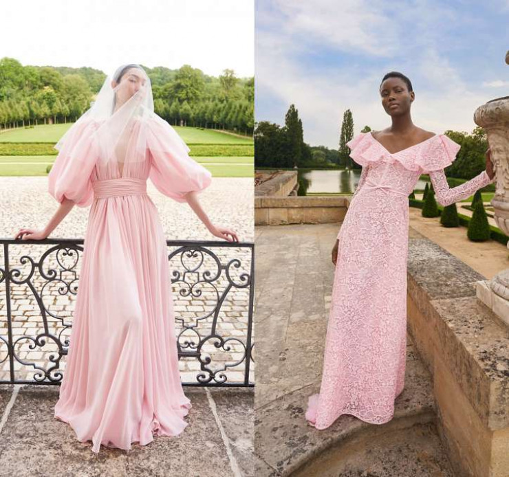 Цвета свадебных платьев в новых коллекциях не ограничиваются оттенками белого. В коллекциях Giambattista Valli, Temperley London и Atelier Couture были модели нежных оттенков розового, голубого и серого.