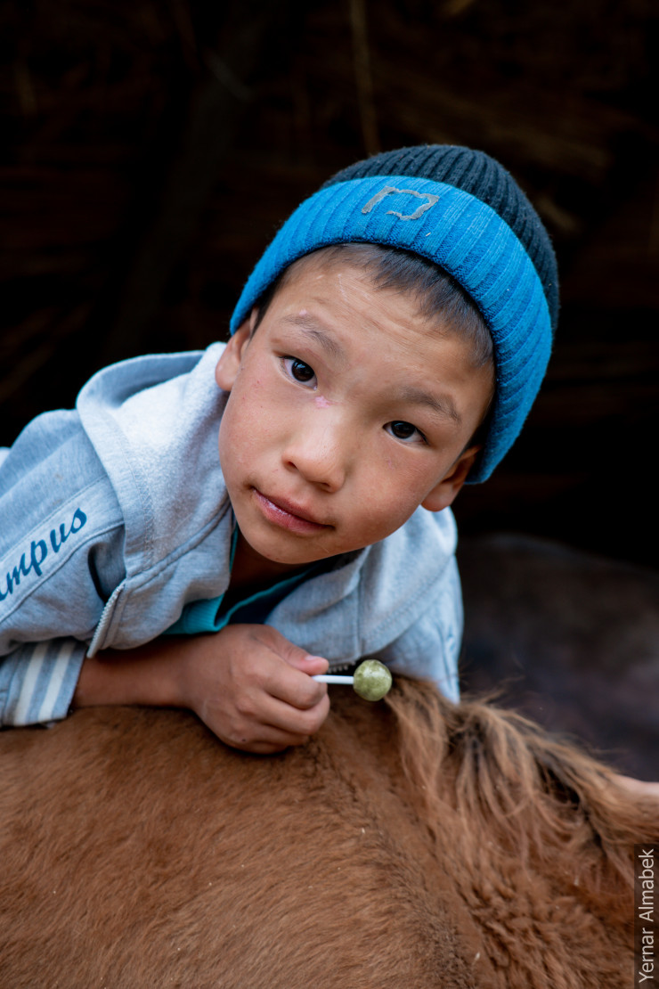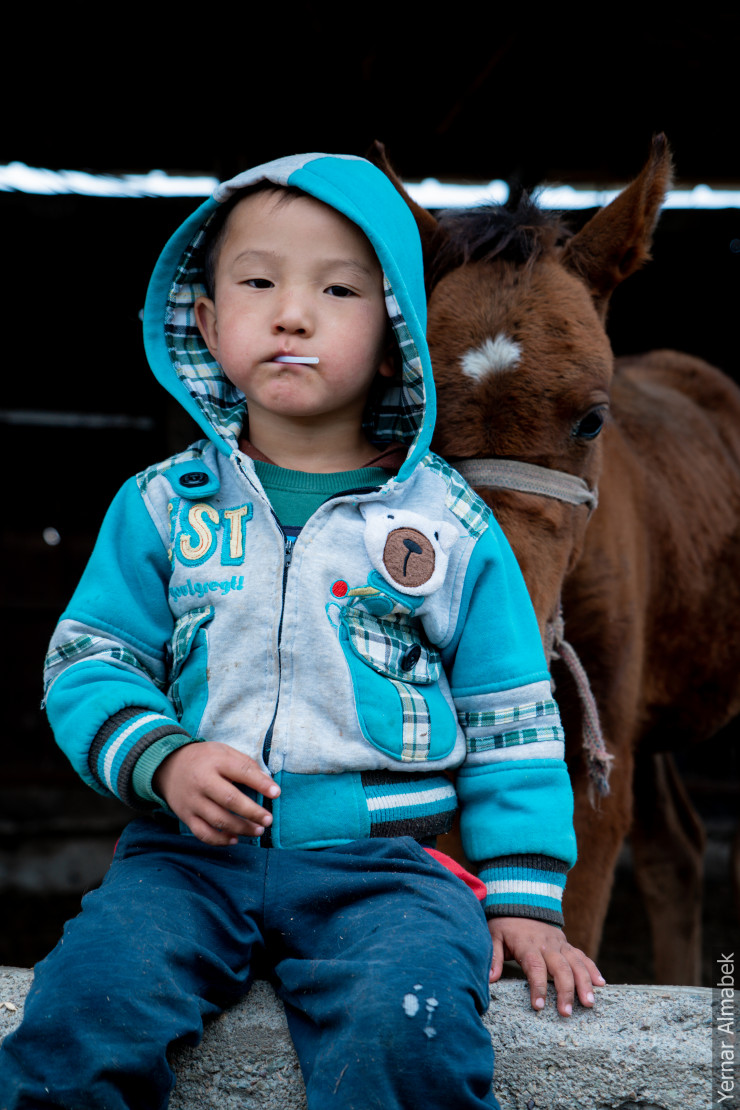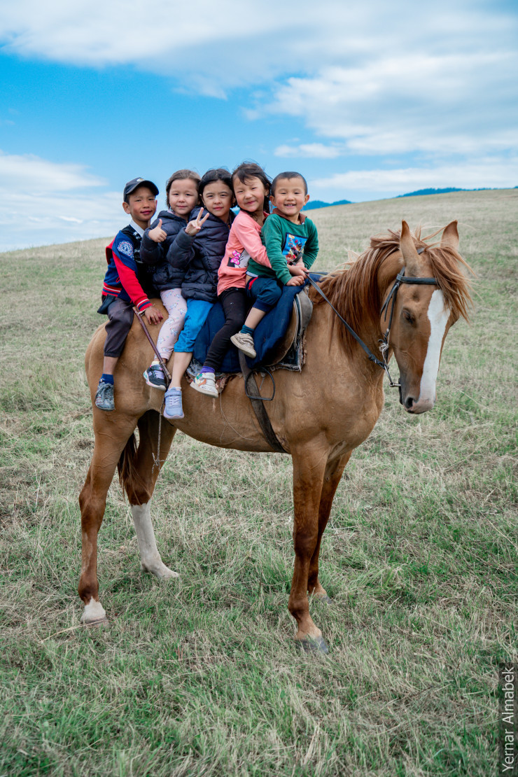 "Фотосессия для детей. Я застал их играющими возле конюшни", - написал в посте Ернар Алмабек.
