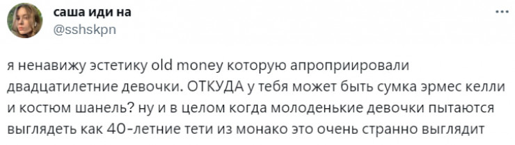 В 2023 году стиль old money все еще остается популярным, однако теперь эстетику то и дело подвергают критике. Пользовательницы сети напоминают, что вещи, создающие иллюзию достатка, не сделают человека на самом деле наследником семейного достояния.