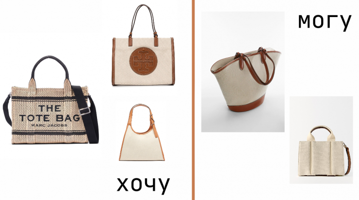 В варианте "хочу" представлены самые популярные модели сумок из ткани. Так, сумка-тоут от Marc Jacobs обойдется в 404 000 тенге, а сумка-шопер от Tory Burch - за 259 000 тенге, третий вариант от Staud обойдется в 150 000 тенге.
