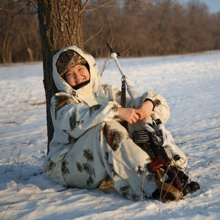 "Чтобы стать хорошим снайпером, важно быть бдительной, спокойной, уравновешенной, без лишних эмоций быстро принимать решения. Я работаю снайпером уже год. Сложно было в первое время, когда начинаешь изучать, что это такое, как все устроено, какие-то технические характеристики оружия, какое есть оружие, как подготовить его к бою, виды боя.
