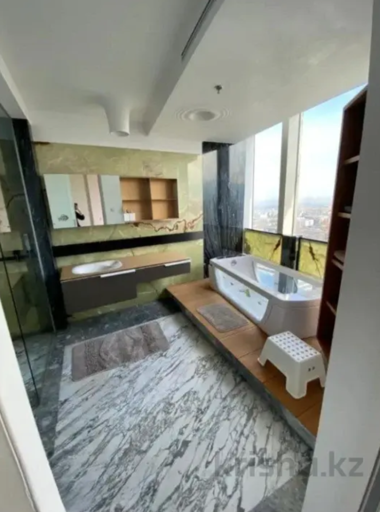 Площадь данной квартиры относительно небольшая – 210 квадратных метров. Расположилось жилье по проспекту Аль-Фараби на 31-м этаже. Виды из окон таких апартаментов впечатляют. Как заявляют продавцы, это "единственная квартира в городе, где имеется открытая терраса на 31-м этаже". К слову, у террасы большая площадь – 61 квадратный метр.