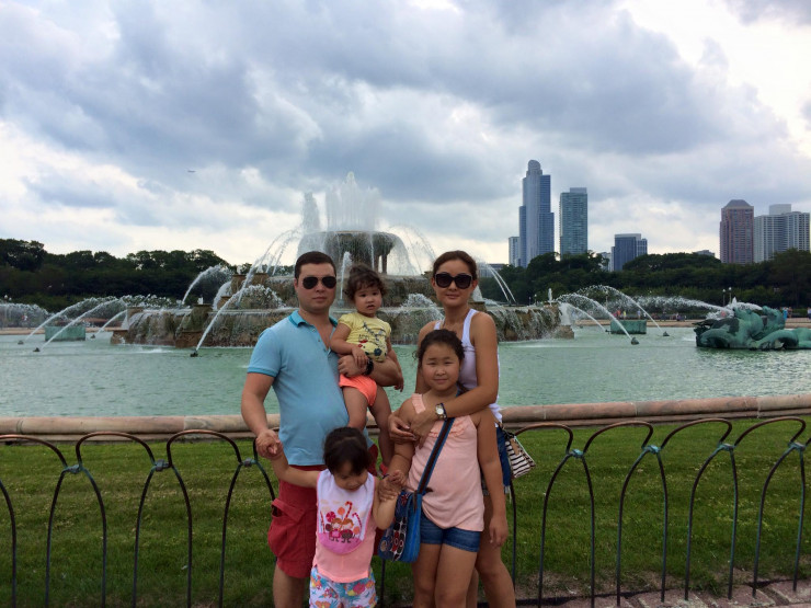 Айгерим Коккозова вместе с мужем и дочерями в США