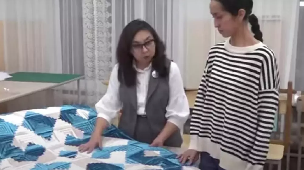 "Көрпе бесконечности": учитель труда из Семея попала в Книгу казахстанских рекордов Кадр из видео "Хабар 24".