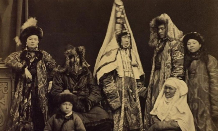 Поляков И. С. Семья в Семипалатинской области в традиционных костюмах. Казахстан, Семипалатинская обл. 1879 год