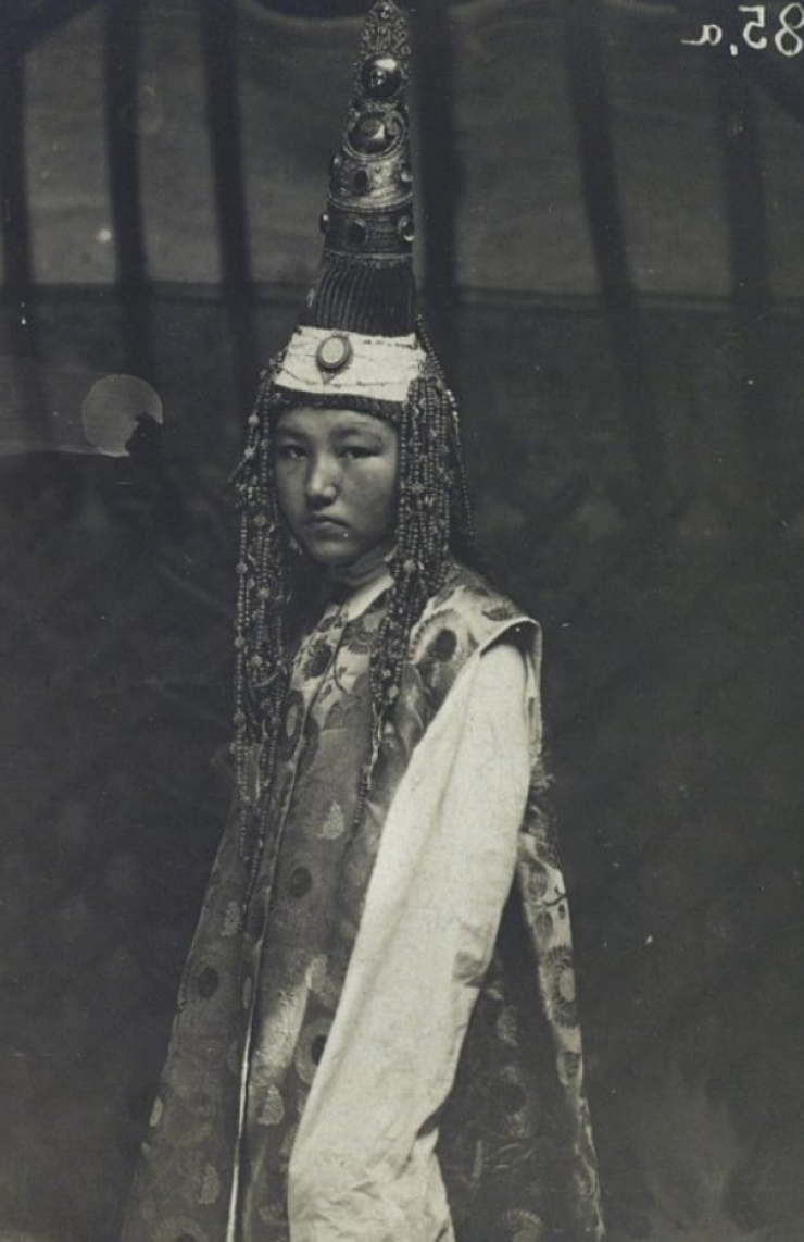 Головной убор передавался тоже из поколения в поколение, и чем старше был возраст саукеле, тем он был ценнее. Отметим, что сверху на конусообразный убор крепились перья филина, а переднюю часть украшали сапфирами и жемчугом.