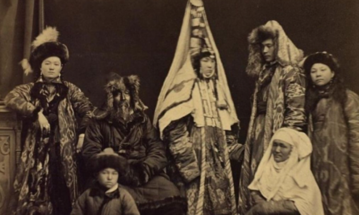 Поляков И. С. Семья в Семипалатинской области в традиционных костюмах. Казахстан, Семипалатинская обл. 1879 год