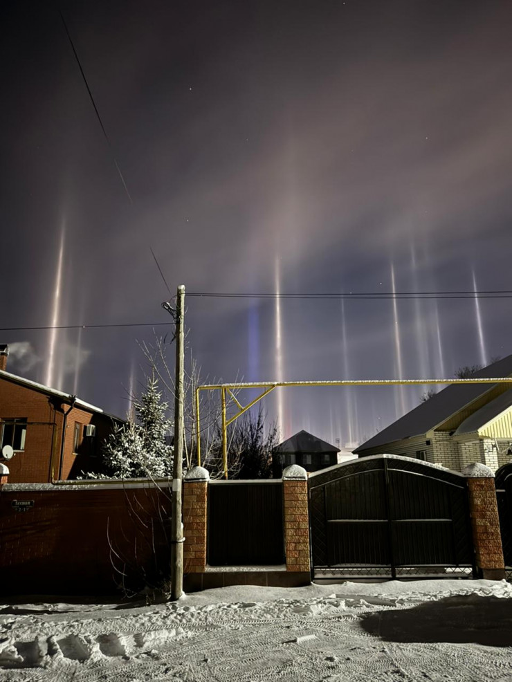 Световые столбы появились над Уральском в ночь на 10 января. Весь город будто осветили гигантские прожекторы, создалось фантастическое зрелище.