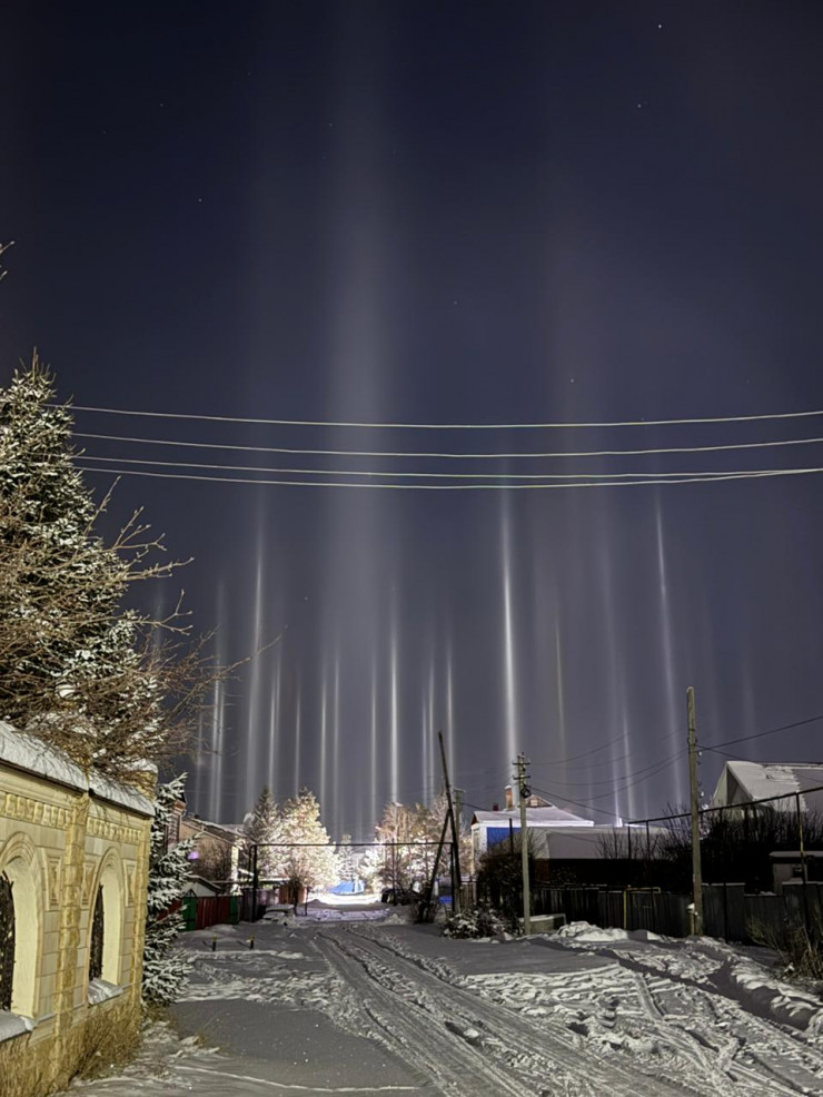 Световые столбы появились над Уральском в ночь на 10 января. Весь город будто осветили гигантские прожекторы, создалось фантастическое зрелище.