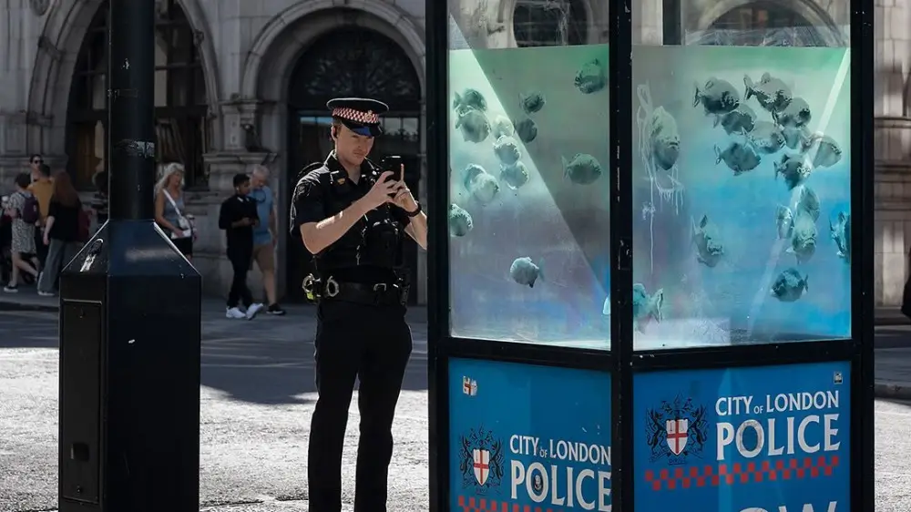 Бэнкси опубликовал снимки нового творения на своей странице в Instagram. На этот раз на лондонской полицейской будке нарисованы пираньи. Художник снова опубликовал работу без каких-либо комментариев.