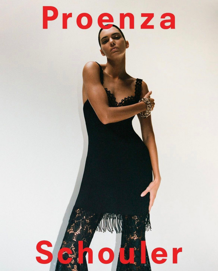 На днях девушка выложила в своем Instagram-профиле фотографии весенне-летней рекламной кампании американского бренда Proenza Schouler. На одной из них Кендалл позирует в роскошном черном платье на бретелях с деталью на подоле в виде бахромы и в кружевных брюках. Снимок моментально разлетелся по всем мировым СМИ и модным пабликам.