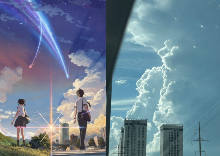 Этот необычный пейзаж отсылает к мультипликационным лентам в стиле аниме, где облакам и небу уделяется особое внимание. К примеру, данные кадры напомнили нам облака в работах Макото Синкай – автора аниме "Твое имя" и "Дитя погоды". По словам фанатов, именно Макото ввел в моду "красивые облака" в мультипликации. Однако природа творит чудеса, и у столичных жителей есть возможность любоваться "нарисованным" облаком прямо из окон.