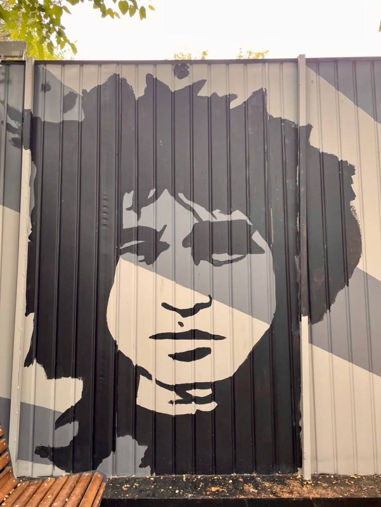 Новый арт-объект появился по адресу Желтоксан, 121, на пересечении с улицей Богенбай батыра. Это место было выбрано неслучайно: локация съемок фильма "Игла" всегда привлекала киноманов и поклонников творчества Виктора Цоя.