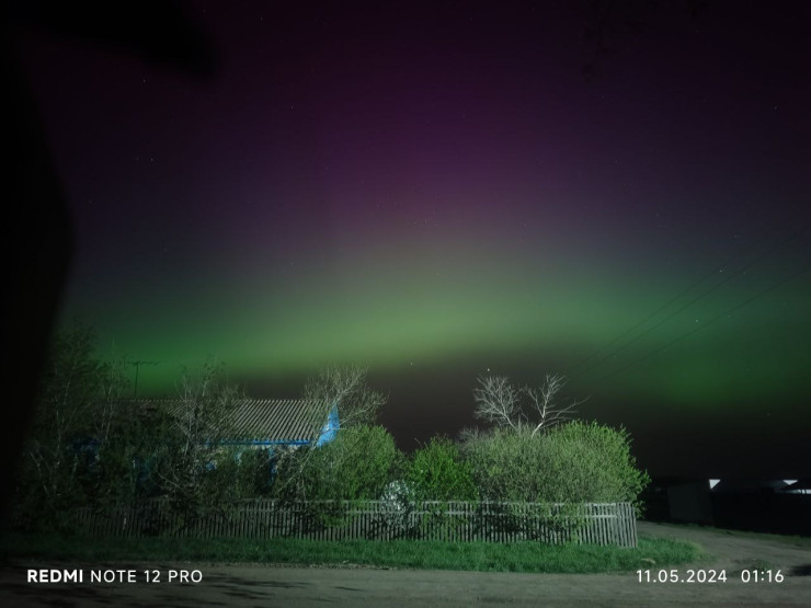 Так, житель села Еликти Зерендинского района Акмолинской области Арман Абдрахманов прислал в редакцию несколько снимков полярного сияния, которые он снял в ночь с 10 на 11 мая.