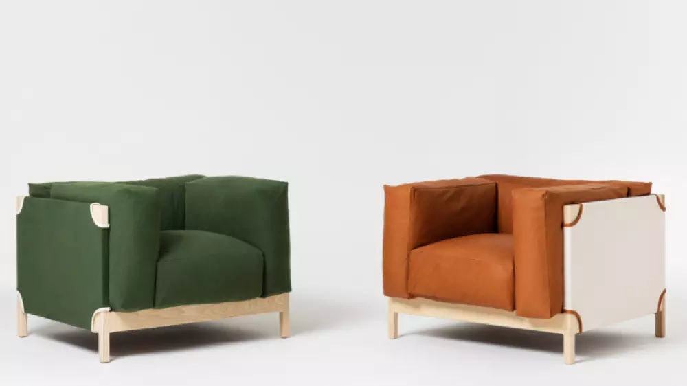 Кресло с каркасом из цельного дерева в спокойных оттенках напоминает туристический складной стул, но в усовершенствованном виде. Оно выполнено из натурального дерева и хлопчатобумажной ткани, поэтому способно вписаться даже в самый минималистский интерьер.