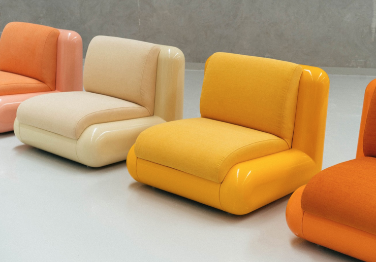 Лондонская студия дизайна интерьеров Holloway Li выпустила серию T4, которая была вдохновлена игривым дизайном 1990-х годов: как видно на картинке, в основу предметов легли такие культовые образы периода Cool Britannia, как надувные стулья и лавовые лампы. Модульные сиденья, выполненные в теплых оттенках, станут громким трендом 2023 года.