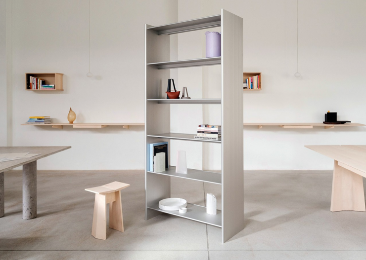 Стеллажная система T Shelf изготовлена из экструдированного алюминиевого профиля, который обычно используется в промышленной отрасли. Способ обработки алюминия, который применялся при производстве, оставляет минимальное количество отходов и делает материал пригодным для вторичной переработки.