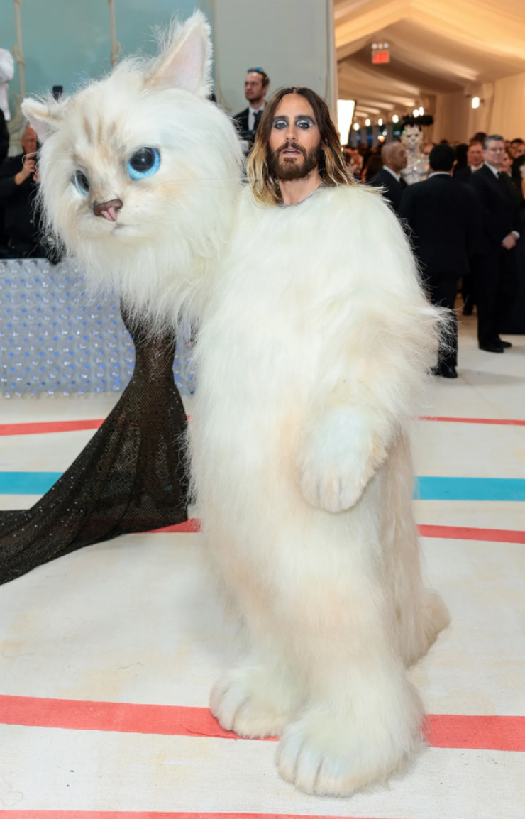 Джаред Лето умеет удивлять публику. Например, на Met Gala 2019 он пришел в образе собственной коровы. На этот раз Лето решил отдать дань уважения Шупетт, знаменитой кошке бирманской породы, которой дизайнер завещал 200 миллионов долларов. Актер прошелся по красной дорожке в гигантском пушистом костюме.
