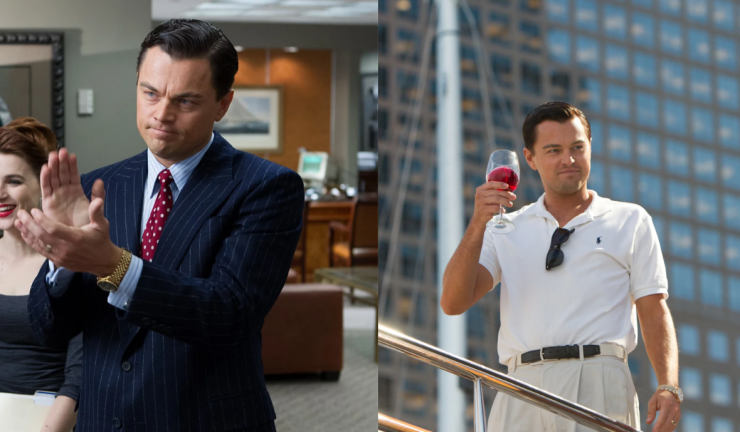 На протяжении трех экранных часов гардероб Джордана Белфорта сознательно эволюционирует вместе с героем: сначала он офисный клерк из Куинса, а к концу - самый богатый человек Америки.