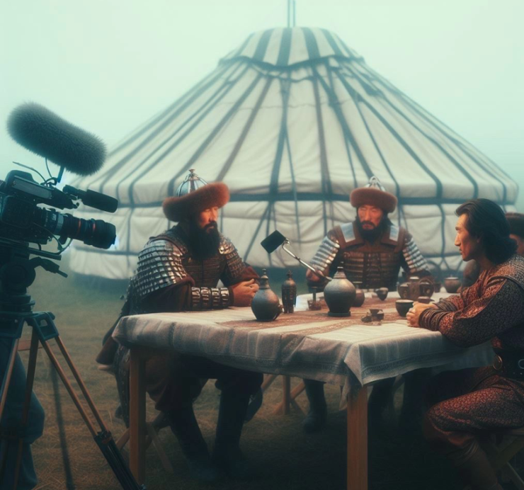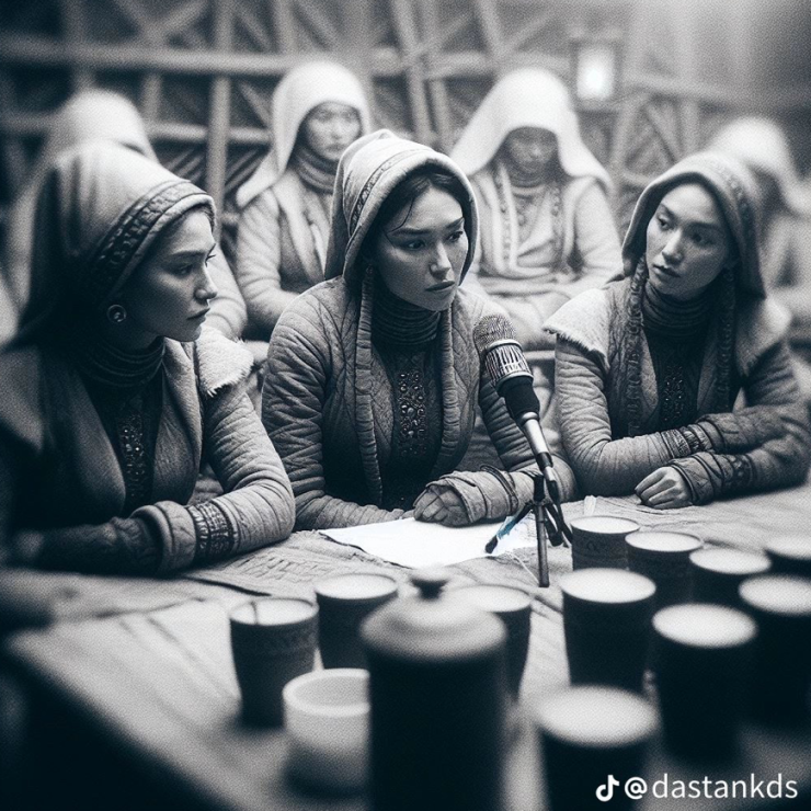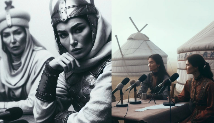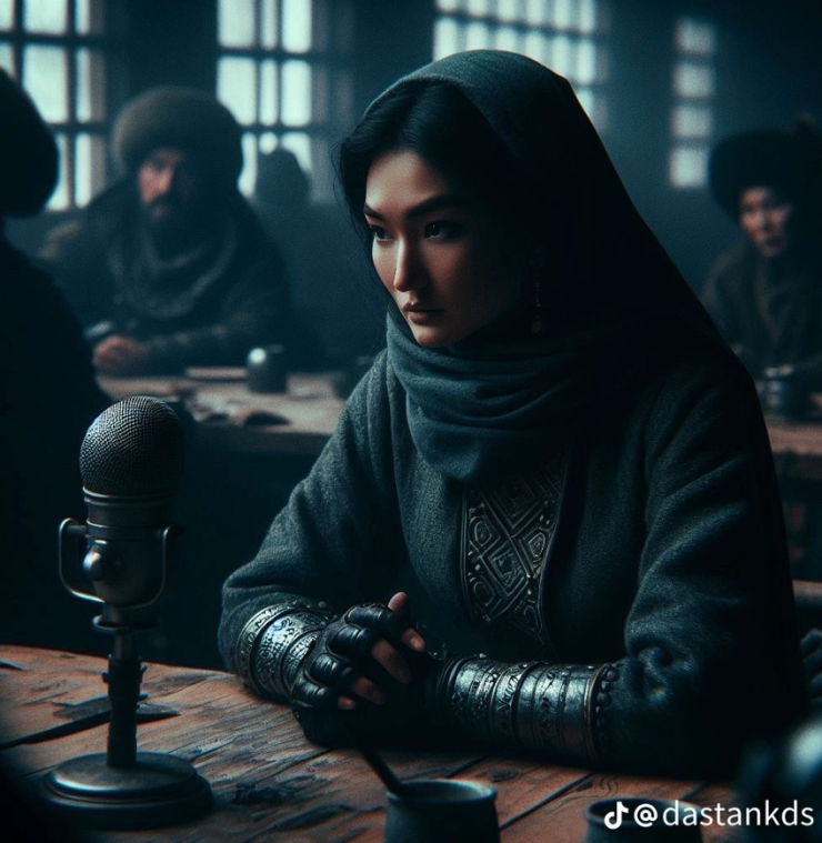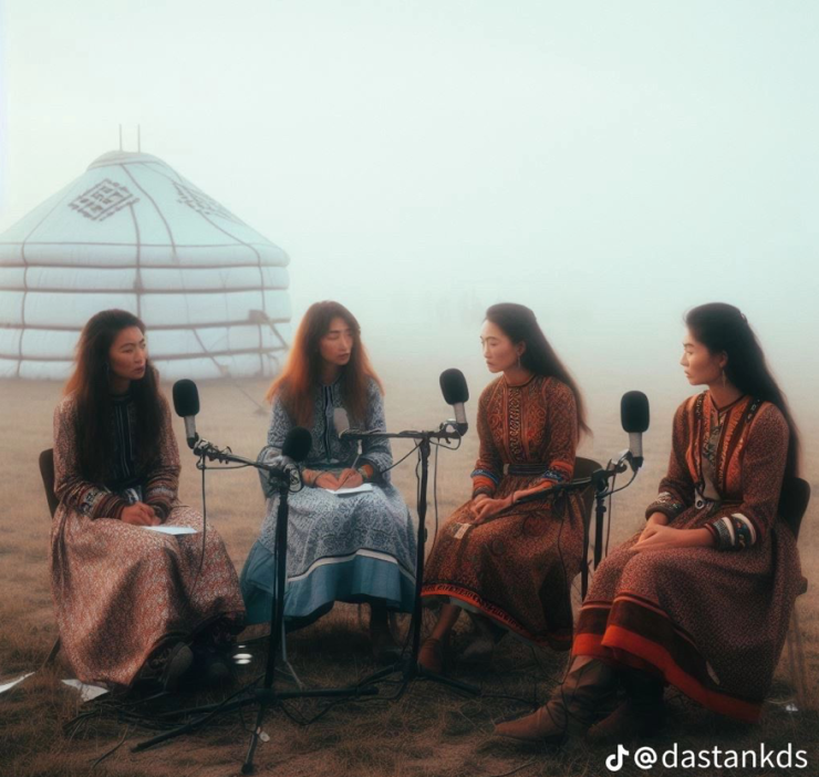 В социальной сети TikTok распространяются кадры, на которых изображены воинственные парни и девушки в казахских костюмах. Отметим, что создал их уроженец Тараза и молодой композитор Дастан. Он представил, как бы выглядел подкаст, если бы его сняли в степи или юрте. Примечателен тот факт, что кадры, сгенерированные ИИ, получились невероятно стильными и детализированными.