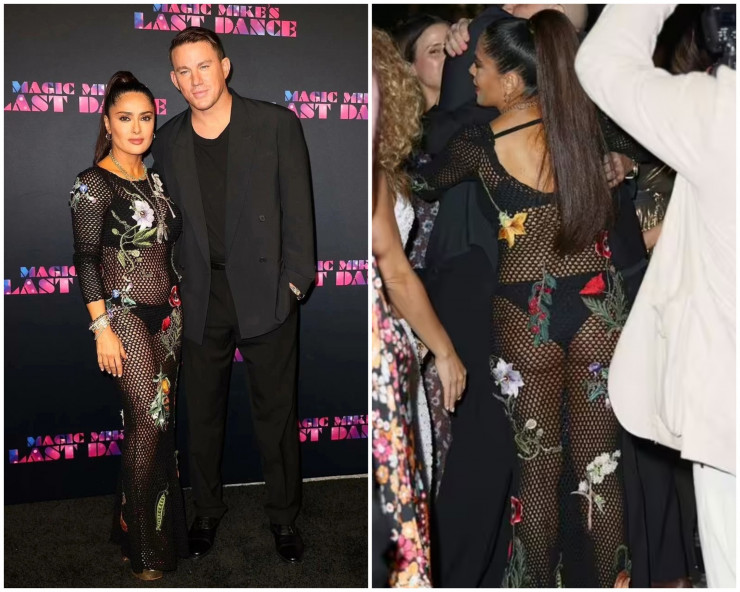 К последней было приковано повышенное внимание публики на красной дорожке. 56-летняя актриса для выхода на премьеру выбрала неожиданно смелый образ – "голое" платье с яркими экзотическими цветами. Оно, к слову, идеально подчеркнуло фигуру Сальмы. При этом на размещенных снимках видно, что на актрисе присутствует комплект нижнего белья черного цвета.