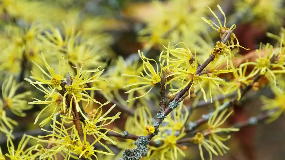 "Гамамелис виргинский (Hamamelis virginiana) - кустарник или небольшое дерево из семейства гамамелисовых, происходящее с атлантического побережья Северной Америки. Осенью, когда большинство растений уже готовится к зиме, на его ветках распускаются жёлтые цветки с тонкими закрученными лепестками, напоминающими солнечные лучи", - сообщили в организации.
