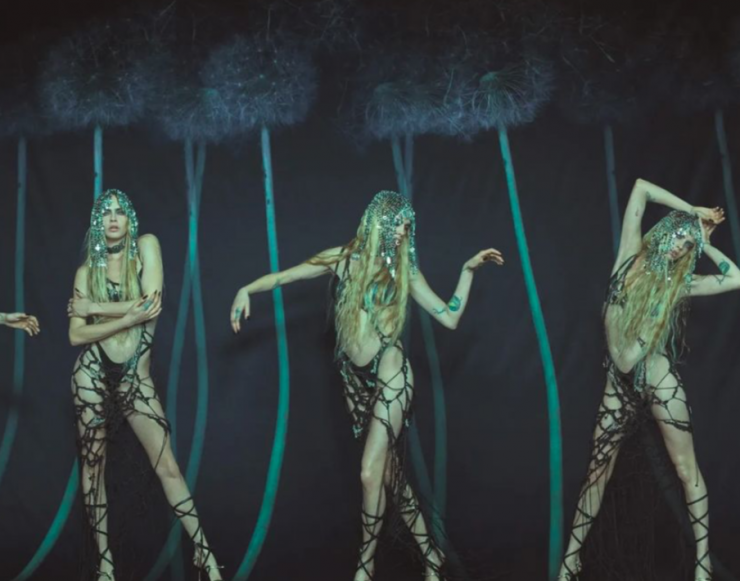 Последний выход Кары Делевинь на шоу Рианны был высоко оценен как поклонниками, так и СМИ. Модель в очередной раз доказала, что может быть дерзкой и утонченной одновременно. В кадре Кара позирует в юбке будто из сетей с необычным сверкающим украшением на голове.