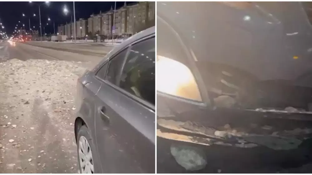 В социальной сети появилось видео ДТП. На кадрах астанчанка показала разбитый бампер, который был поврежден после наезда на сугроб, оставленный посреди дороги.