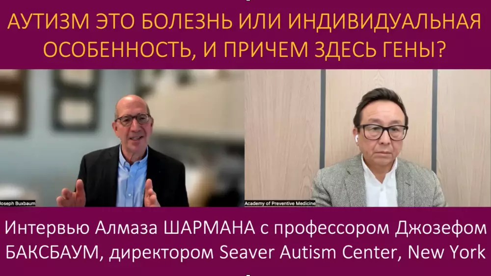 Профессор медицины, член Американской ассоциации здравоохранения Алмаз Шарман обсудил причины, диагностику и лечение аутизма с одним из ведущих в мире специалистов в этой области доктором Джозефом Баксбаум. Он является профессором нейронаук и геномики клиники Mount Sinai и медицинской школы Icahn в Нью-Йорке, директором одного из самых передовых в мире научных центров по изучению аутизма Seaver Autism Centre, а также редактором престижного научного журнала Biomed Central Molecular Autism.
