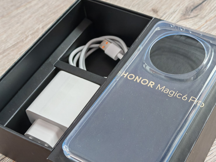 Открываем коробку и приступаем к изучению "начинки". А внутри спрятано полноценное зарядное устройство (это, кстати, сверхбыстрая проводная зарядка HONOR SuperCharge 80 Вт). Наличие адаптера питания не может не радовать, так как многие разработчики в последнее время грешат тем, что кладут в коробку со смартфоном один только шнур. Чехол в комплекте не идет, однако он доступен к покупке во всех официальных сетях, поэтому искать его у перекупщиков не придется.