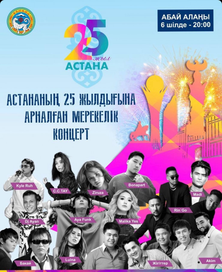 - в Алмалинском районе праздничный концерт в честь Дня столицы пройдет 6 июля в 17:00 на территории ТРЦ MEGA Park;