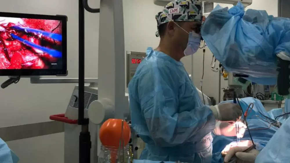 Сложность проведения операции младенцу заключается в том, что голова очень маленькая, но мозг увеличен в объеме за счет врожденного порока, и коридор, через который мы проводим данную процедуру, очень узкий. Несмотря на это, мы выполнили операцию очень хорошо, успешно. И сейчас уже почти месяц у ребенка нет судорог", - говорит Азамат Жайлганов.