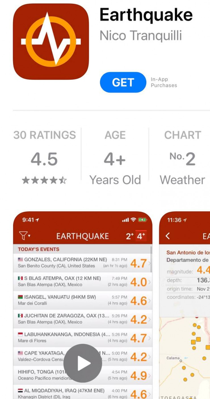 В описании приложения отмечается, что с помощью него можно получить "оповещения о землетрясениях в реальном времени на вашем смартфоне". Также есть реклама и платный контент. У приложения более пяти миллионов скачиваний.