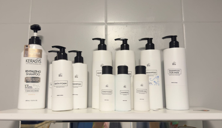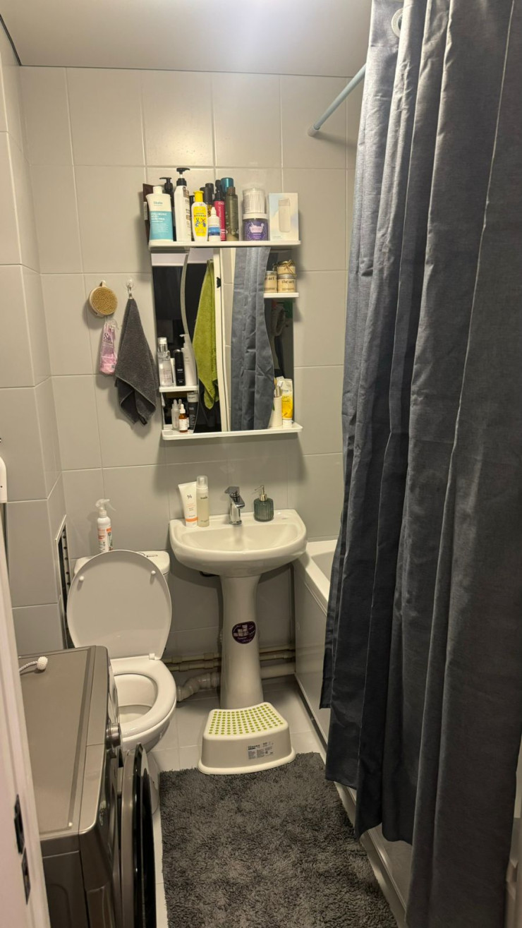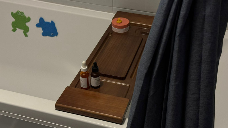 Последними штрихами стали приобретенные на маркетплейсах аксессуары для ванной комнаты: новая шторка для ванной за 7 тысяч тенге и черный карниз за 3 тысячи тенге.