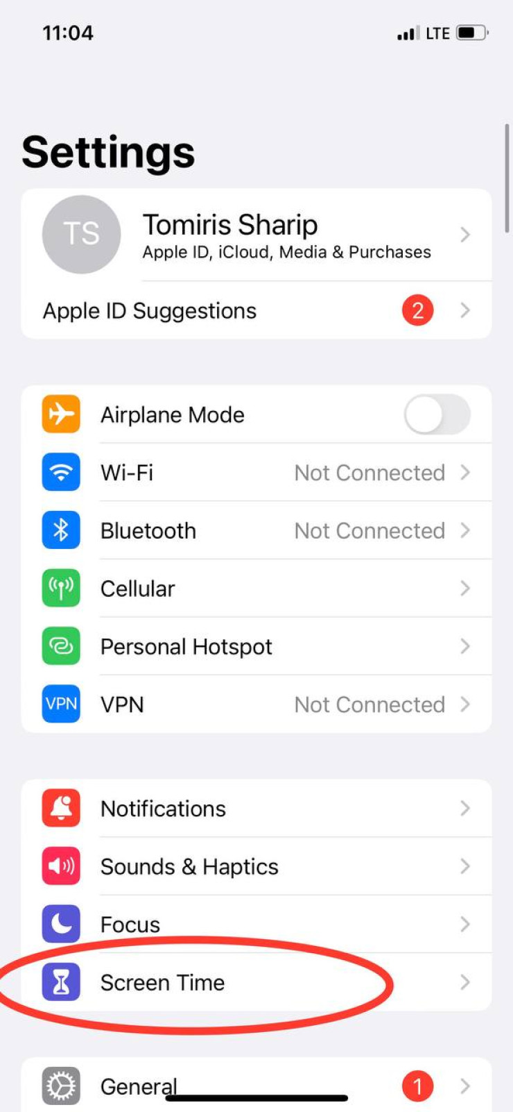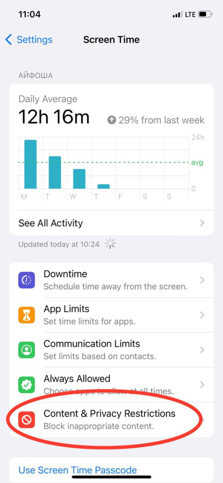 - Перейдите в раздел "Экранное время";