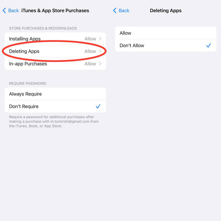 - Найдите пункт "Удаление приложений" и выберите "Не разрешать".