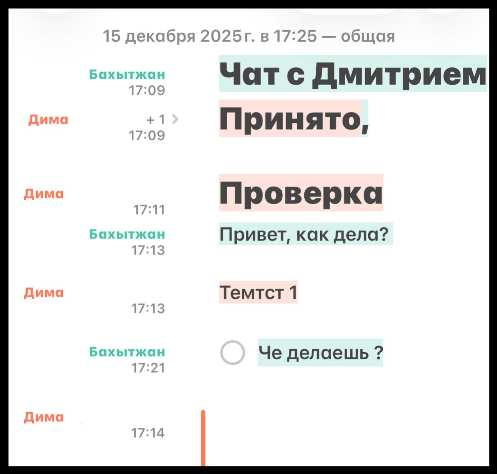 Если провести пальцем по тексту слева направо, видно, кто и когда добавил сообщение.