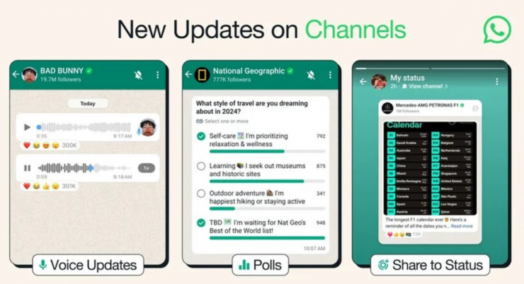 Кроме того, в каналах появилась функция опросов, которая ранее была доступна только в группах. Наконец, пользователи WhatsApp теперь могут делиться публикациями каналов в своем статусе, а нажатие на чат или изображение из канала дает возможность переслать его другим пользователям.