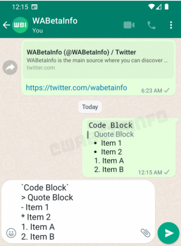 Популярный мессенджер WhatsApp тестирует разметку текста в сообщениях, передает Tengri Life со ссылкой на WABetaInfo.