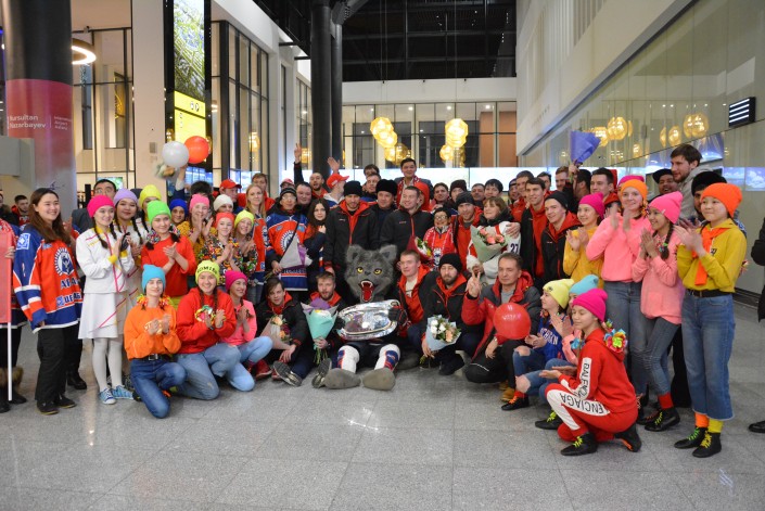Спортсмены были буквально завалены букетами цветов от десятков фанатов, не пожалевших сил и времени, чтобы встретить героев в Астане. Поздравить команду лично приехал исполнительный директор Казахстанской федерации хоккея с шайбой Андрей Сачук.