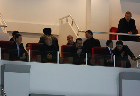 Президент Казахстана Нурсултан Назарбаев прибыл во Дворец спорта "Казахстан" на хоккейный матч между астанинским "Барысом" и челябинским "Трактором". В VIP-ложе вместе с главой государства за игрой следят Премьер-министр республики Карим Масимов, первый заместитель НДП "Нур Отан" Нурлан Нигматулин, глава Федерации хоккея РК Аскар Мамин и министр туризма и спорта Темирхан Досмухамбетов. Об этом с места события передает корреспондент Tengrrinews.kz. На вопрос "С чем может быть связан интерес Президента к этой игре?" в пресс-службе главы государства предположили, что, возможно, у Нурсултана Назарбаева "праздничное настроение, отсюда и плотный график в этот Рождественский день" (до посещения Дворца спорта Президент побывал на торжественной литургии в Успенском соборе). К моменту написания, хоккеисты "Трактора" открыли счет. Тем временем, пресс-служба хоккейного клуба "Барыс" полагает, что визит Назарбаева связан с последним успешным выступлением астанинской команды. Напомним, 5 января столичный "Барыс" по буллитам обыграл команду из Уфы "Салават Юлаев" (счет 4:3). В пресс-службе "Барыса" отметили, этот матч был один из наиболее ожидаемых - "Салават Юлаев" считается одним из сильнейших соперников астанчан. Эта встреча проходит в рамках регулярного матча чемпионата КХЛ сезона 2010-201. В последний раз команды встречались 14 октября 2010 года в Челябинске. Тогда астанинские хоккеисты проиграли со счетом 4:2 (1:0, 1:2, 2:0). Отметим, что "Барысу" удалось лишь единожды одержать победу над "Трактором" из шести сыгранных друг с другом игр.