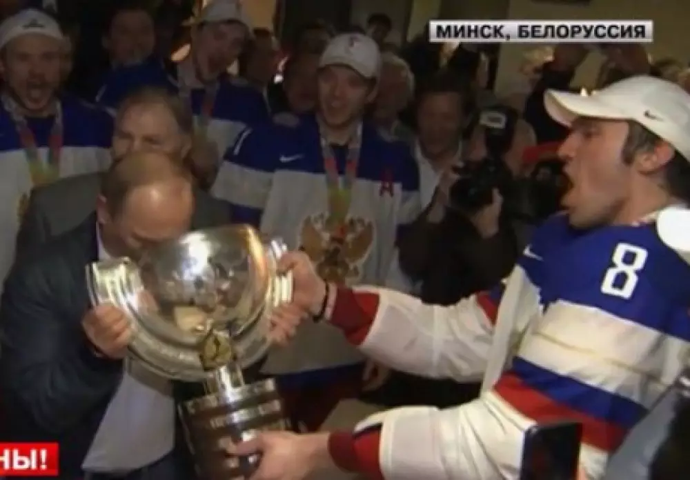 Как известно, Россия разгромила Финляндию в финале ЧМ по хоккею со счетом 5:2. Владимир Путин лично присутствовал на финальном матче в Беларуси. Президент России также поучаствовал в послематчевом праздновании команды, где он отпил шампанского из чемпионского кубка из рук капитана сборной Александра Овечкина. Подробнее читайте здесь.