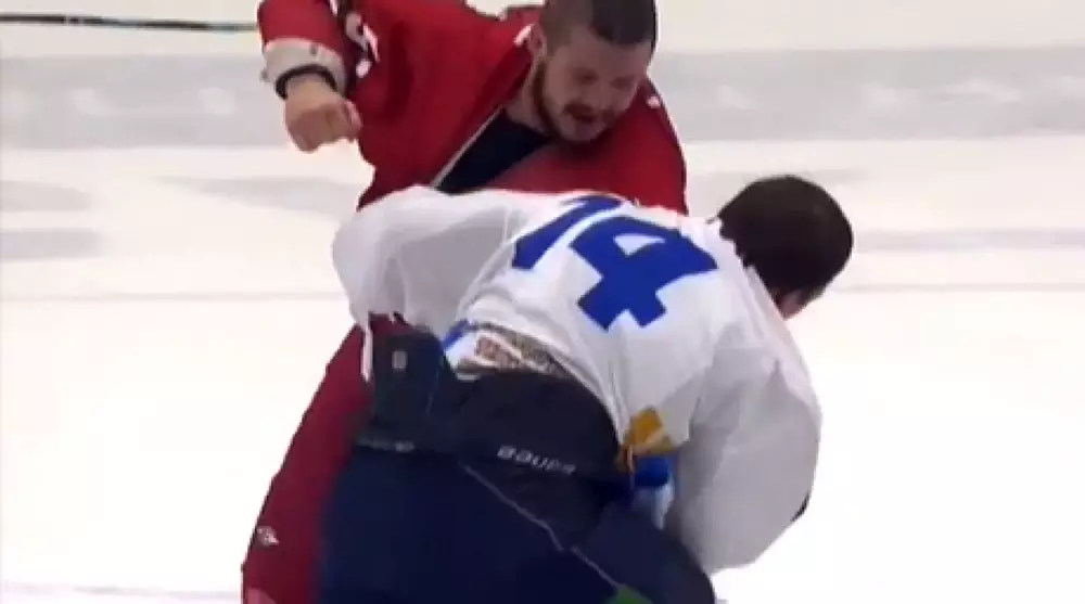 Первое место в рейтинге заняла необычная драка между игроком "Сарыарки" Кириллом Тулуповым и президентом "Барыса" Нурланом Оразбаевым, который выскочил на лед, чтобы защитить одного из своих хоккеистов.