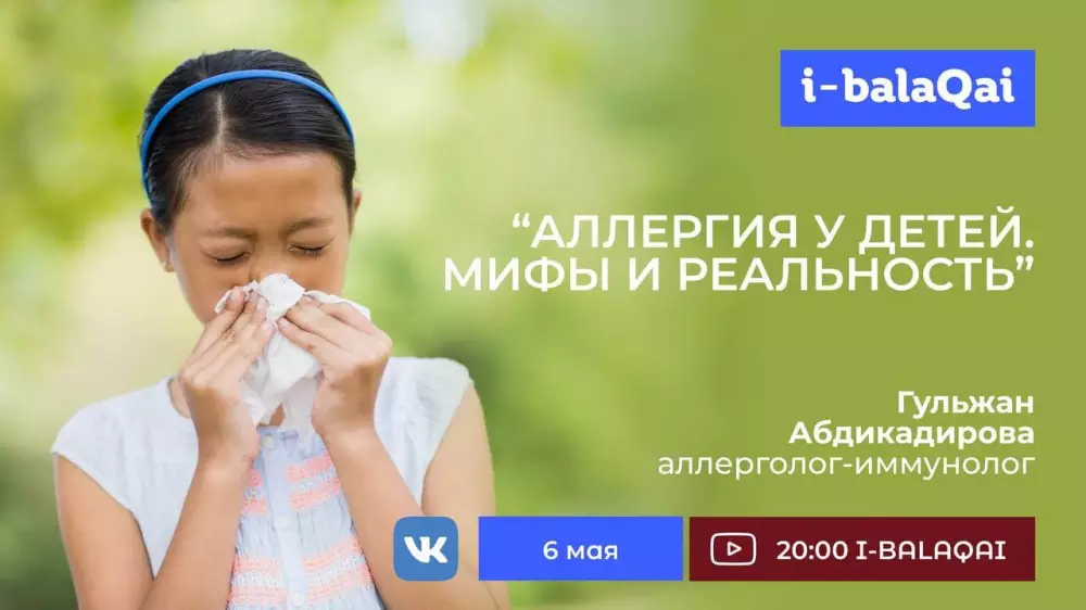 Смотрите сегодня, 6 мая, в 20.00 на YouTube-канале I-BALAQAI, об аллергии и путях ее лечения расскажет аллерголог-иммунолог Гульжан Абдикадирова.