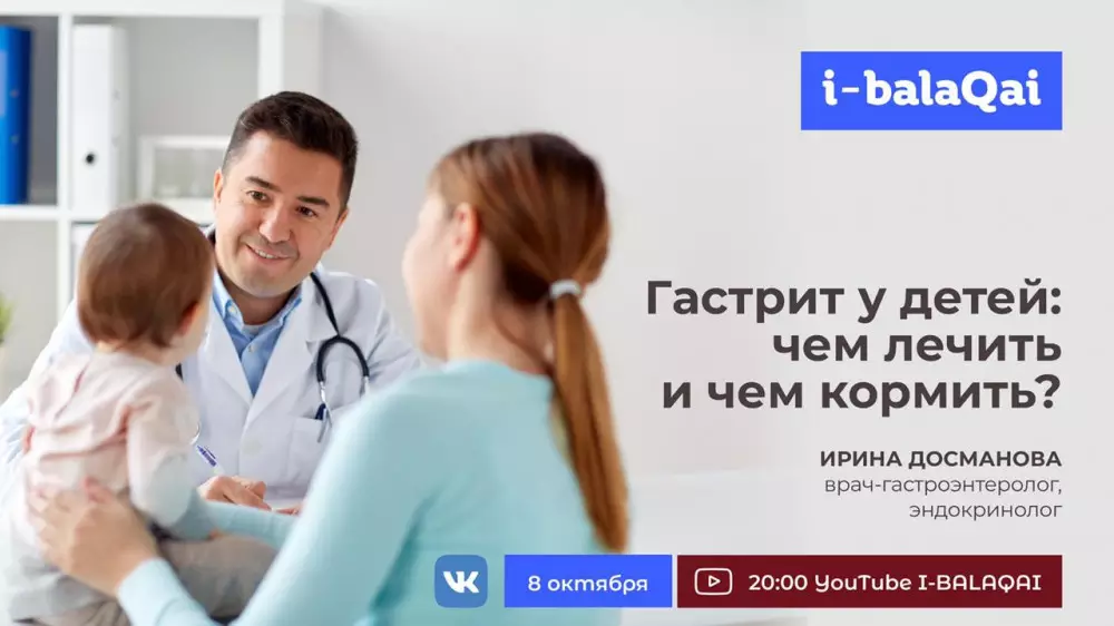Смотрите сегодня, 8 октября, в 20.00 на YouTube-канале I-BALAQAI. Гость эфира поговорит на тему: "Гастрит у детей: чем лечить и чем кормить?". Врач также объяснит, почему сыроедение, исключение некоторых продуктов из рациона и "чистка" организма могут навредить ребенку.